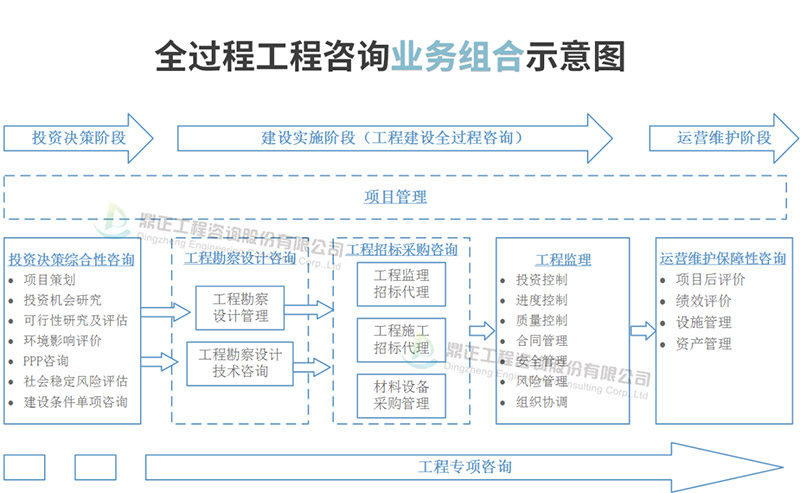 全過程工程咨詢是指工程咨詢方綜合運(yùn)用多學(xué)科知識(shí)、工程實(shí)踐經(jīng)驗(yàn)、現(xiàn)代科學(xué)技術(shù)和經(jīng)濟(jì)管理方法,采用多種服務(wù)方式組合,為委托方在項(xiàng)目投資決策、建設(shè)實(shí)施乃至運(yùn)營(yíng)維護(hù)階段持續(xù)提供局部或整體解決方案的智力性服務(wù)活動(dòng)。