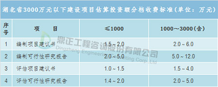 投資決策咨詢包括編制項(xiàng)目建議書、編制可行性研究報(bào)告、評(píng)估項(xiàng)目建議書、評(píng)估可行性研究報(bào)告等,取費(fèi)可參考《國(guó)家計(jì)委關(guān)于印發(fā)建設(shè)項(xiàng)目前期工作咨詢收費(fèi)暫行規(guī)定的通知》(計(jì)價(jià)格〔1999〕1283號(hào)),該文件提出了投資額在3000萬元以上的建設(shè)項(xiàng)目前期工作咨詢收費(fèi)標(biāo)準(zhǔn),而投資額3000萬元以下的建設(shè)項(xiàng)目由各省自行制定,如湖北省制定了相應(yīng)的地方標(biāo)準(zhǔn)——《省物價(jià)局關(guān)于制定估算投資額3000萬元以下建設(shè)項(xiàng)目前期工作咨詢收費(fèi)標(biāo)準(zhǔn)的通知》(鄂價(jià)房服〔2001〕107號(hào)),具體收費(fèi)標(biāo)準(zhǔn)根據(jù)估算投資額在收費(fèi)標(biāo)準(zhǔn)相對(duì)應(yīng)的區(qū)間內(nèi)用插入法計(jì)算。