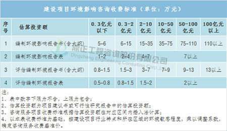 環(huán)境影響咨詢?nèi)≠M(fèi)可參考《建設(shè)項(xiàng)目環(huán)境影響評(píng)價(jià)收費(fèi)標(biāo)準(zhǔn)》(計(jì)價(jià)格〔2002〕125號(hào)),以估算投資額為計(jì)費(fèi)基數(shù),根據(jù)建設(shè)項(xiàng)目不同的性質(zhì)和內(nèi)容,采取按估算投資額分檔定額方式計(jì)費(fèi)。