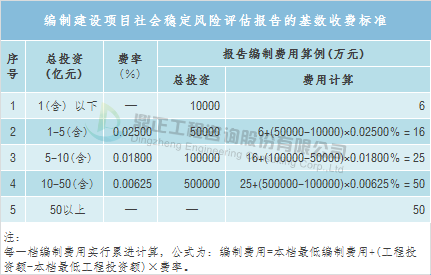 按照上述調(diào)整系數(shù)對(duì)建設(shè)項(xiàng)目社會(huì)穩(wěn)定風(fēng)險(xiǎn)評(píng)估咨詢服務(wù)收費(fèi)進(jìn)行調(diào)整后,編制建設(shè)項(xiàng)目社會(huì)穩(wěn)定風(fēng)險(xiǎn)評(píng)估報(bào)告的收費(fèi)低于6萬元的,按6萬元計(jì)取,高于50萬元的按50萬元計(jì)取;評(píng)價(jià)建設(shè)項(xiàng)目社會(huì)穩(wěn)定風(fēng)險(xiǎn)評(píng)估報(bào)告的收費(fèi)低于4萬元的,按4萬元計(jì)取,高于25萬元的,按25萬元計(jì)取。