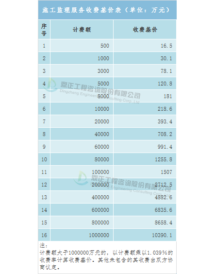 工程監(jiān)理取費(fèi)可參考《國(guó)家發(fā)改委建設(shè)部關(guān)于印發(fā)<建設(shè)工程監(jiān)理與相關(guān)服務(wù)收費(fèi)管理規(guī)定>的通知》(發(fā)改價(jià)格〔2007〕670號(hào)),施工監(jiān)理服務(wù)收費(fèi)按照下列公式計(jì)算: