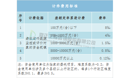 全咨單位參與預(yù)算績(jī)效管理服務(wù)取費(fèi)可參考地方收費(fèi)標(biāo)準(zhǔn),如湖北省地方標(biāo)準(zhǔn)——《湖北省財(cái)政廳關(guān)于印發(fā)<湖北省第三方機(jī)構(gòu)參與預(yù)算績(jī)效管理工作暫行辦法>的通知》(鄂財(cái)績(jī)規(guī)〔2014〕3號(hào)),績(jī)效運(yùn)行跟蹤監(jiān)控和績(jī)效評(píng)價(jià)全部委托服務(wù)采用計(jì)件收費(fèi)方式的,以績(jī)效運(yùn)行跟蹤監(jiān)控或評(píng)價(jià)對(duì)象的資金規(guī)模為計(jì)費(fèi)依據(jù)。