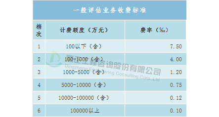 (1)一般評(píng)估業(yè)務(wù)收費(fèi)標(biāo)準(zhǔn)