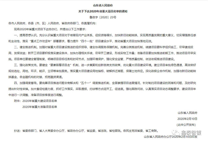 2020年2月12日,山東省人民政府發(fā)布了《關(guān)于下達(dá)2020年省重大項(xiàng)目名單的通知魯政字 [2020] 23號》。我司項(xiàng)目“日照金屬表面處理中心生態(tài)產(chǎn)業(yè)園”名列全省233個項(xiàng)目中第56位。