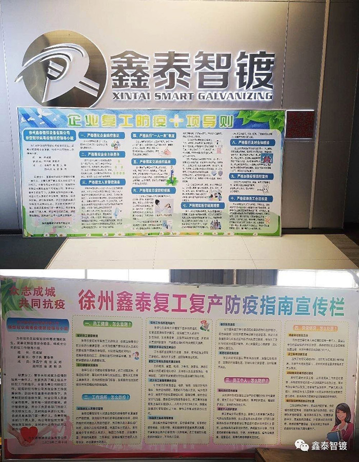 徐州鑫泰鍍鋅設備有限公司迅速成立以董事長任成斌為組長的疫情防控領導小組,制定