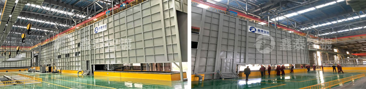 線型描述:從黑件上掛到助鍍成一條直線;鍍鋅、冷卻、鈍化環線運行??傮w呈直線排布。前處理“側進側出”,鍍鋅及后處理“端進端出”。